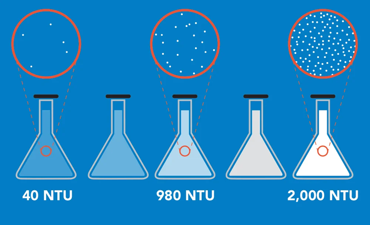 As the optical design of the light, aperture, and photodetector differ between turbidity instruments, samples must be calibrated with an NTU standard or other turbidity standard.