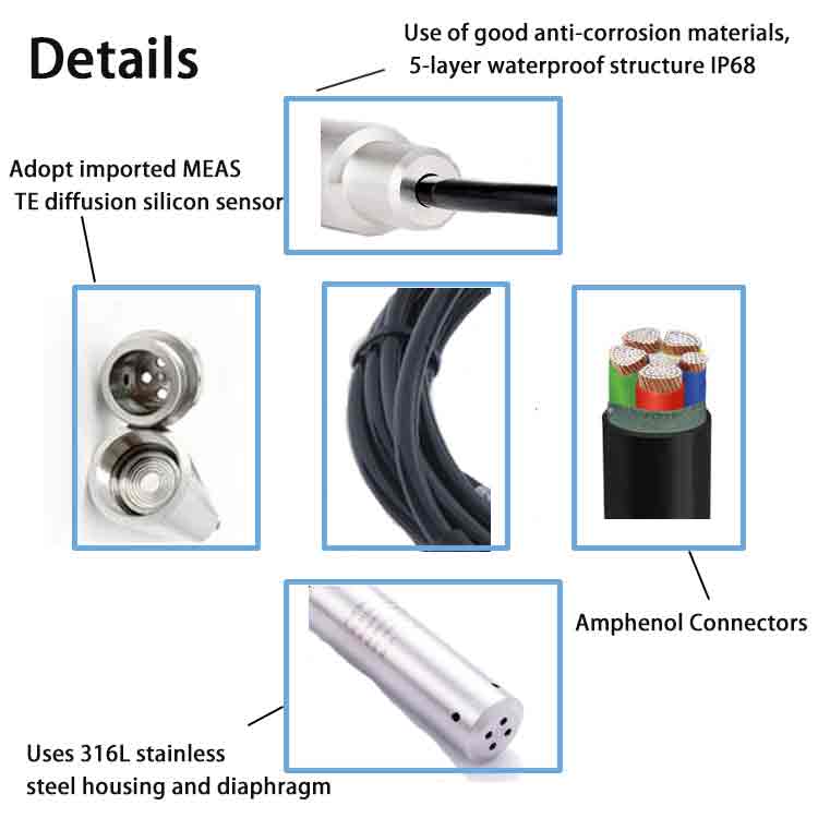 - Based on the hydrostatic pressure principle: the liquid depth is proportional to the pressure it bears, and the sensor calculates the water level height by measuring the water pressure.