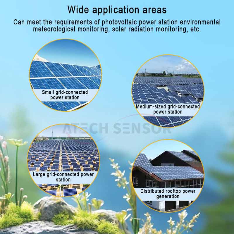 • Silicon Photovoltaic Radiation Sensors: Based on silicon photovoltaic technology, these sensors are widely used for radiation monitoring in photovoltaic power stations. They efficiently capture solar radiation changes, adapt to various climatic conditions, and optimize data collection through the solar tracking system.